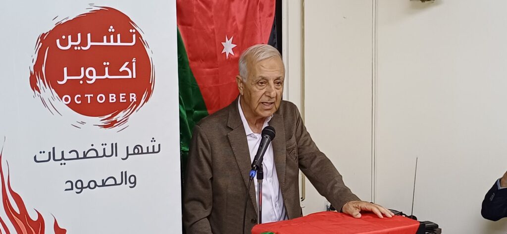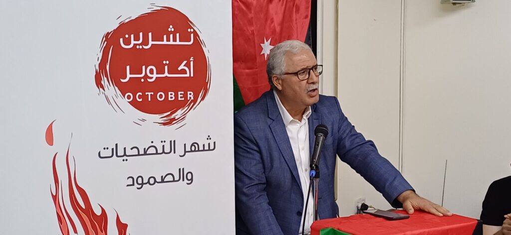 حشد – بدعوةٍ من اللجنة الشعبية الأردنية لدعم المقاومة العربية، أقيمت في مقرّ حزب الشعب الديمقراطي الأردني (حشد) باكورة فعاليات أكتوبر – شهر التضحيات والصمود، والذي أقرته اللجنة الشعبية، لتعقد الفعالية الجماهيرية الأولى بعنوان “طوفان الأمة.. طريق النصر والتحرير”، تأكيدًا على أن نهج المقاومة هو سبيلُ الأمة إلى التحرير، وأن الوفاء لتشرين هو وفاءٌ لدماء الشهداء في ساحات المواجهة كافة.