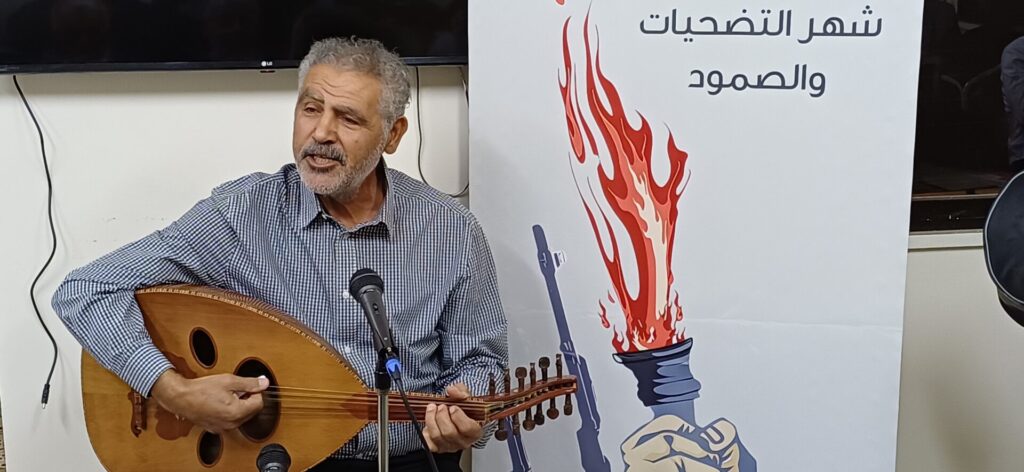 واختُتم المهرجان بفقرة فنية قدمها أستاذ الأغنية الوطنية الملتزمة كمال خليل، الذي ألقى ولأول مرة، أغنية “هنا قد نموت” والتي كتبها الشاعر الراحل أحمد أبوسليم ”